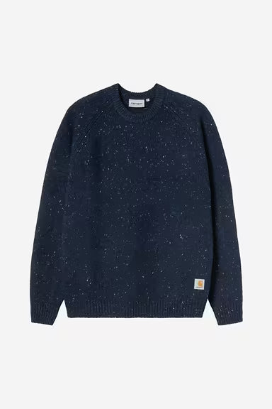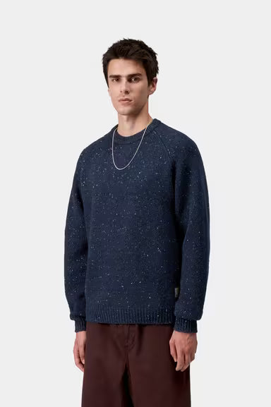 The Anglistic Sweater is knit in a regular fit with raglan sleeves from a tactile blend of lambswool, cotton, and acrylic yarn. It also features a subtly speckled look throughout and is detailed with a woven Square Label at the hem.