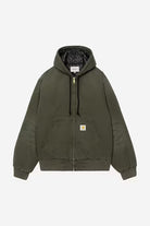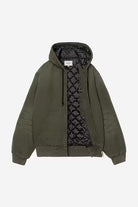 The OG Active Jacket is made of 12 oz organic cotton Dearborn Canvas. It is a heavyweight, insulating style cut in the original loose fit, and features a diamond-quilted lining, as well as a ribbed hem and cuffs. A kangaroo pocket, adjustable hood and zipped front fastening offer functional touches, while triple-stitch details provide extra durability.
